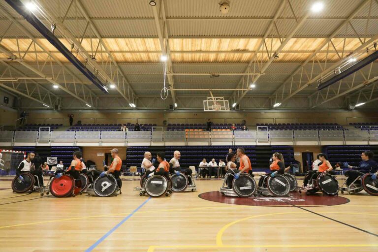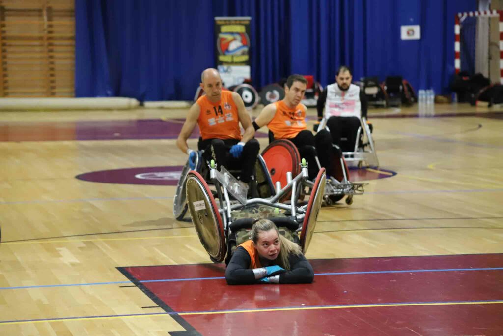 Este fin de semana vivimos una intensa jornada de liga nacional de rugby en silla de ruedas en el Pabellón El Parque de Illescas, con los encuentros con Lobos QR, Dragones del CAAD y CD Zuzenak. Dos jornadas llenas de esfuerzo, compañerismo y pasión por este deporte que no entiende de límites. Cada partido fue una lección de entrega, respeto y trabajo en equipo, con nuestra afición apoyando desde la grada.
